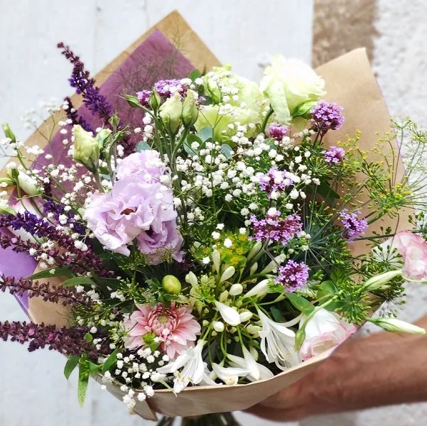 La goutte d'eau qui a fait déborder l'espresso, a été d'apprendre que le nombre d'horticulteurs.horticultrices a été divisé par 10 en 40 ans en France. J'ai pensé que l'on devait pouvoir proposer autre chose : des bouquets de saison, simples et joyeux, composés de fleurs et feuillages locaux.